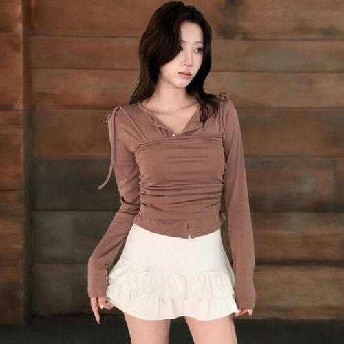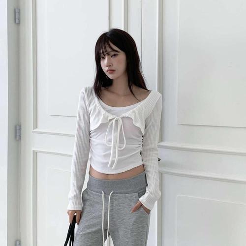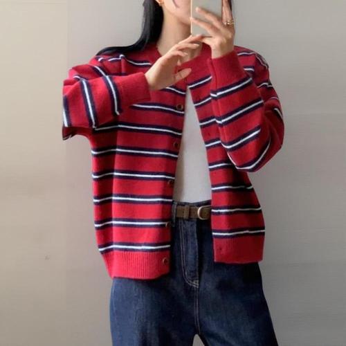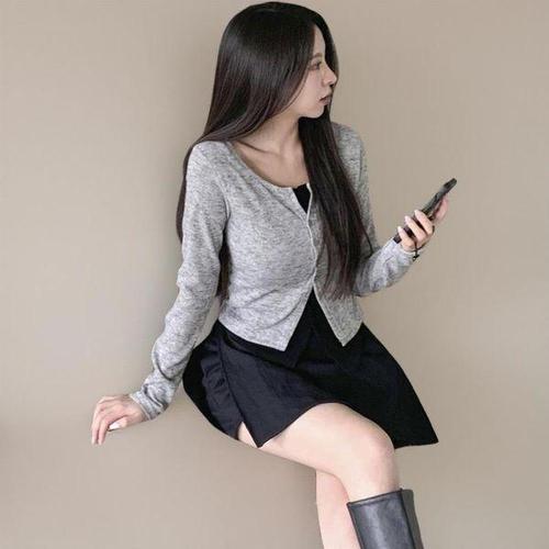 [신상오픈런]여성 클래식 색상 조합 레이어드 레이온 슬림핏 니트 가디건
