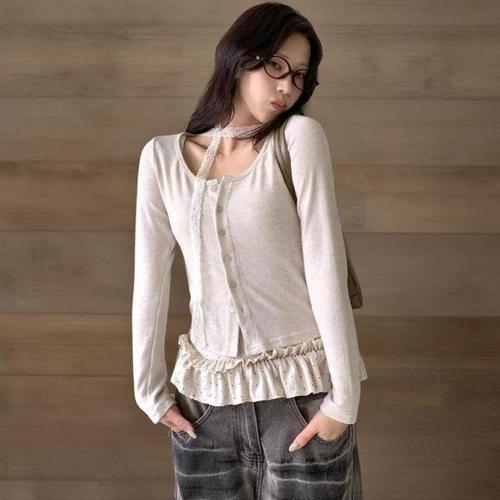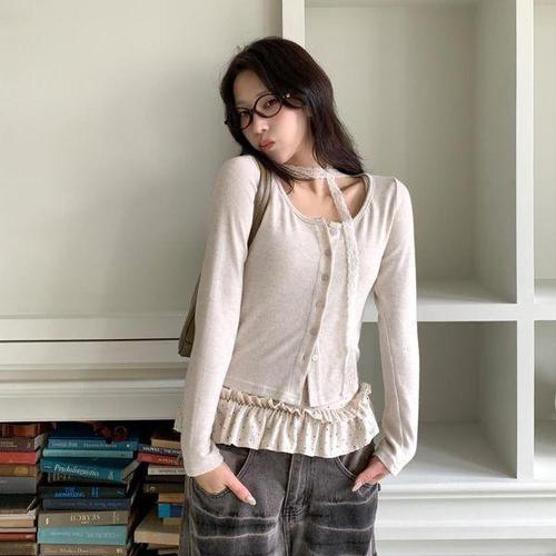[다잇템]여자 프릴 레이온 카디건 초커넥 세트