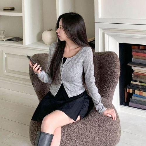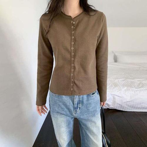 [신상오픈런]여성 심플 레이온 스냅버튼 라운드넥 긴팔 가디건