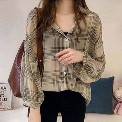 [셀럽하우스]캐주얼셔츠 NYIX5167 무늬 빈티지 여친룩 체크 데일리 레이온
