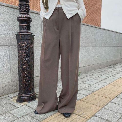 여성용 피온 투 핀턱 세미 와이드 슬랙스