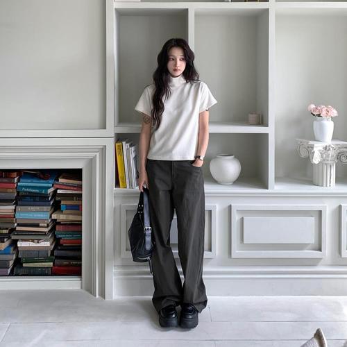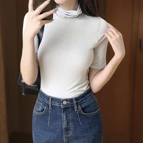 오피스 룩 인견 반 목 폴라 티셔츠 레이온 하프 넥 티
