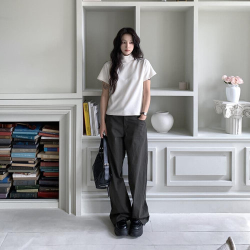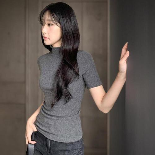 [옷자락] 여자 레이온 스판 하이넥 무지컬러 반팔 티셔츠
