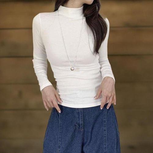 [신상오픈런]여성 슬림핏 긴팔 티셔츠 레이온 스판 폴라넥 데일리웨어