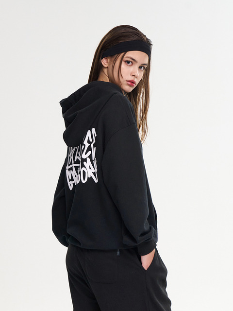 [레이지비] 시그니처 그래피티 루즈핏 후드티 오버핏 데일리 긴팔 스웨트셔츠 후디 W 블랙