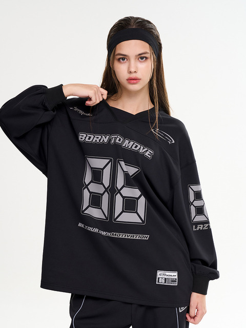[레이지비] 자이언트핏 긴팔티 럭비져지 오버핏 헬스 짐웨어 맨투맨 러닝 저지 블록코어 W 블랙