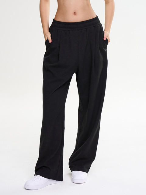 [레이지비] 원턱 스웨트 팬츠 운동복 트레이닝복 와이드 밴딩 바지 W 블랙