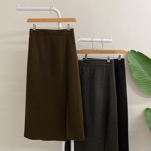 허니제이 / 2사이즈 루니엔 모직 사이드 슬릿 뒷밴딩 롱 스커트(3color)