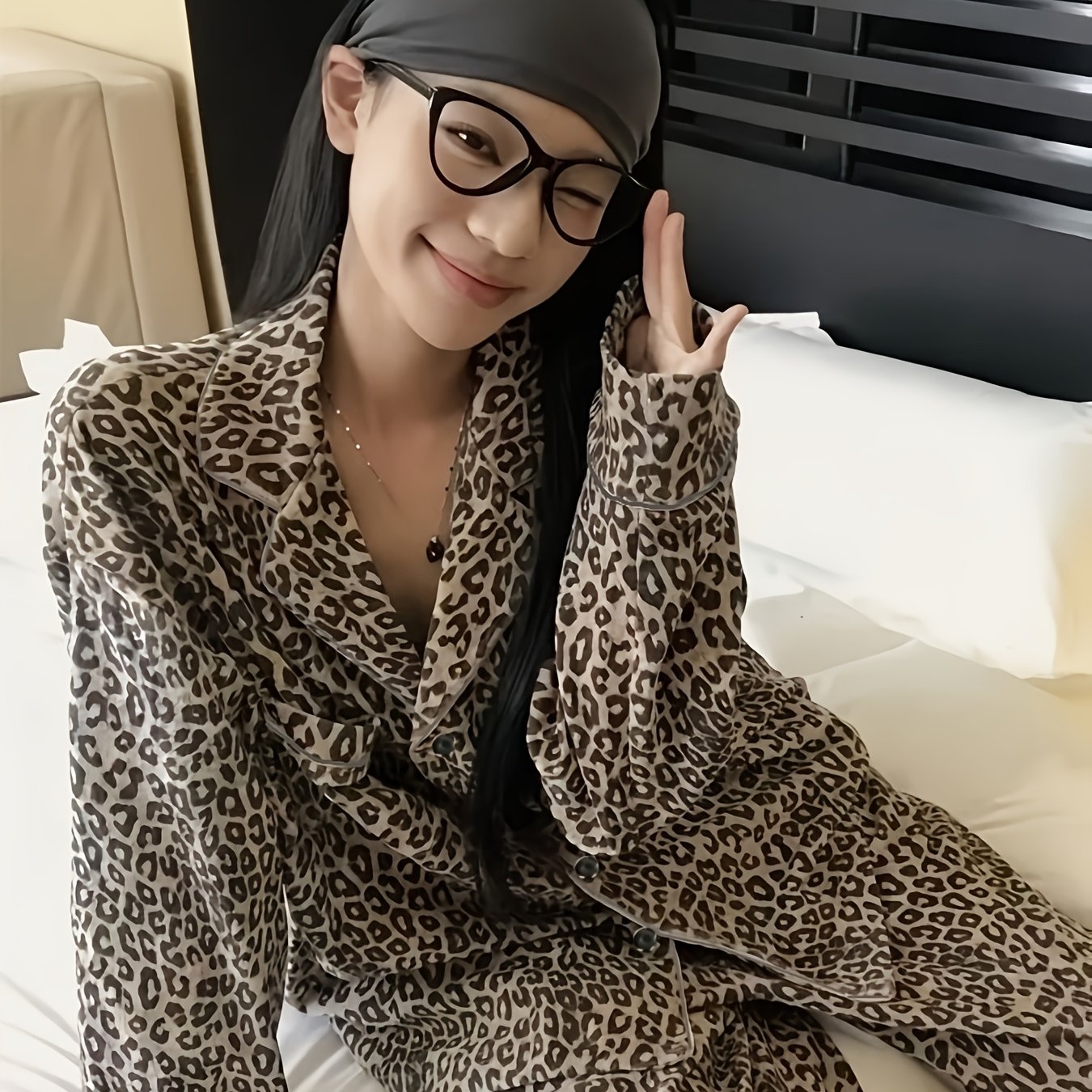 TEMU 가을 겨울 블랙 앤 화이트 프린트 긴팔 긴바지 편안한 잠옷 라운지웨어