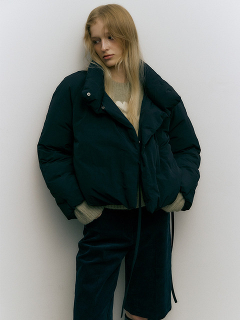 BuGeum 여성 루즈핏 구스다운 숏 패딩 점퍼