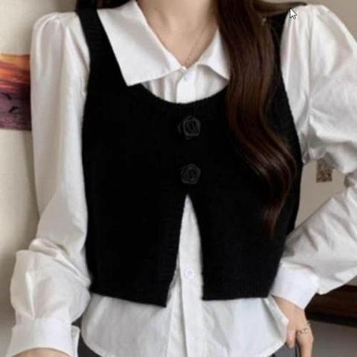[라일리의류] Rly 크롭기장 블라우스 레이어드한 듯한 디자인 니트 44496201)
