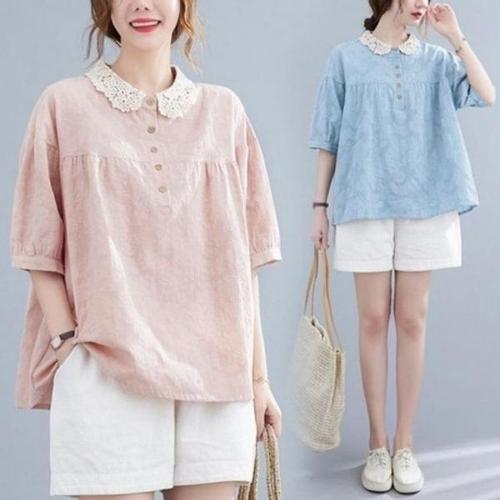 [엄지척]레이스카라 루즈핏 반팔 반소매 블라우스 자카드_19643093_667501