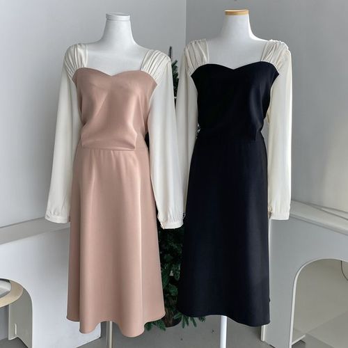 페이퍼먼츠 브이넥 스티치 스트랩 미디 원피스 07066