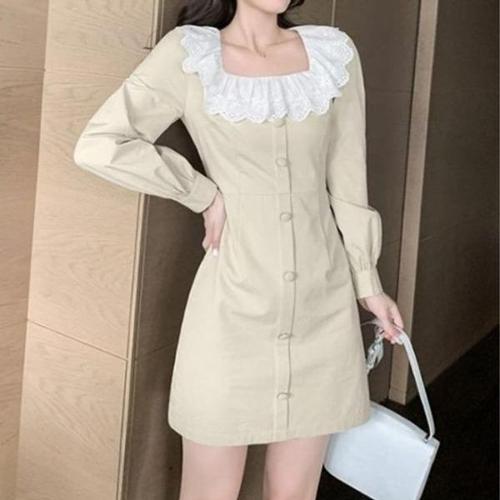 [엄지척]한색상 레이스카라 원피스 CESS 7111 미니 치마원피스_19871862_667501