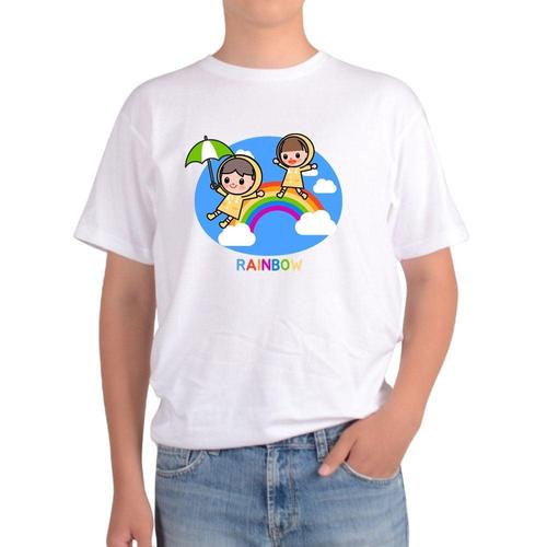 [에이치플러스몰]길단 반팔 USA핏 무지개 우산 RAINBOW 우비소녀 무지개다리그림 다양한색상 전사이즈