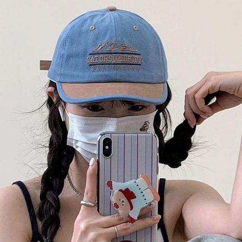 [에이치플러스몰]라인 레터링 귀요미 MZ 스트릿 배색 숏챙 볼캡