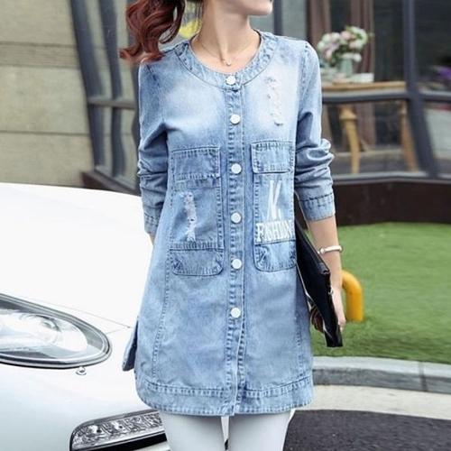 [옷자락]여자 레터링 자수 빈티지워싱 연청 캐주얼 청자켓