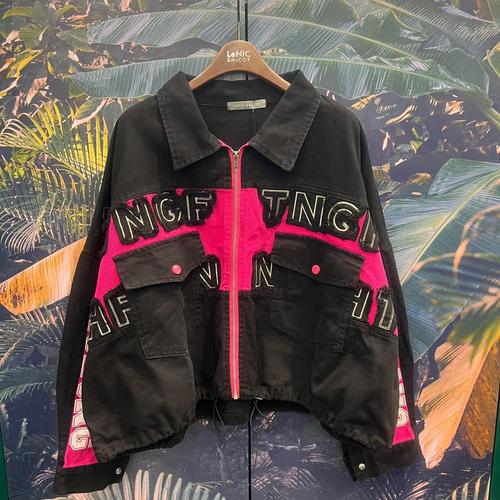 [다잇템]여자 레터링 라벨 스트릿 블랙데님 가을 청자켓