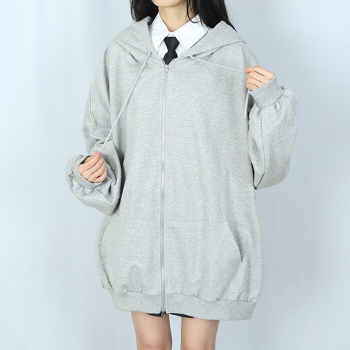 [라일리여성의류] Rly 아우터 배색후드집업 오버핏후드집업 레터링후드집