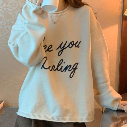 (스타일하우스) 니트티 스웨터 티셔츠 레터링 여성 니트티 베이직 여자 긴팔 니트티셔츠