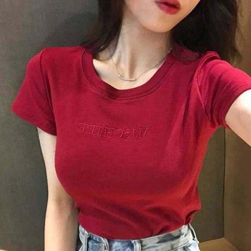 [에이치플러스몰]여성 자수 레터링 반팔티 1P 데일리 슬림핏 티셔츠