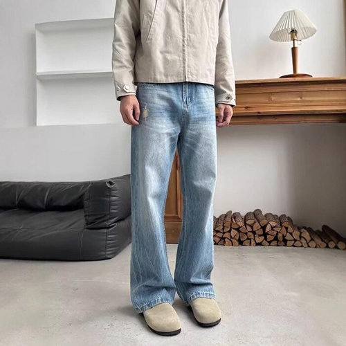 [다잇템]남자 일자 절개 와이드핏 레트로 청바지