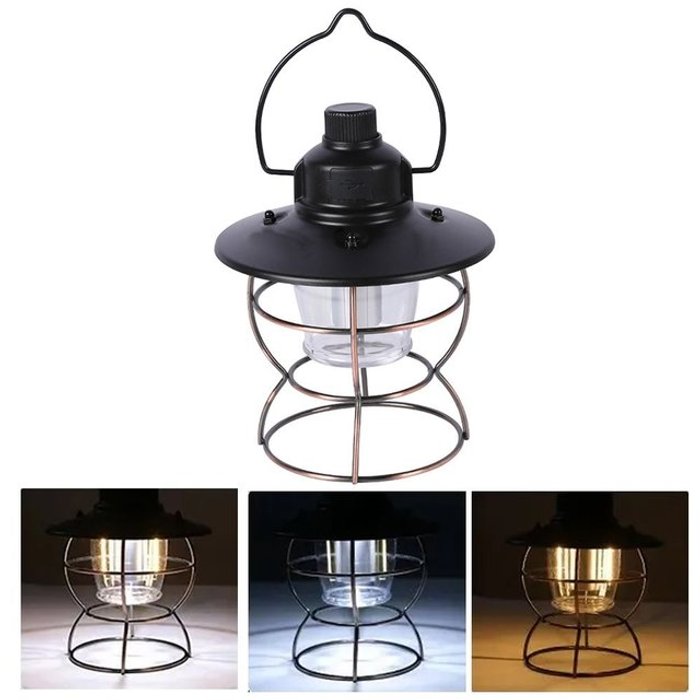 조명 빈티지 레트로 휴대용 캠핑 랜턴 충전식 걸이식 램프 야외 3 가지 모드 조도 조절 비상 USB 포함