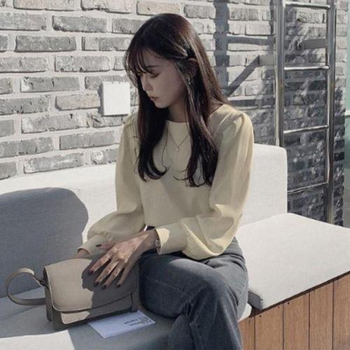 [신상오픈런]여성용 파스텔톤 심플 셔링 블라우스