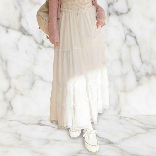 [신상오픈런]여성 일상 로맨틱 휴가 스타일 레이스 프릴 롱 스커트