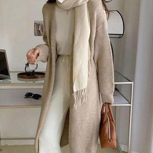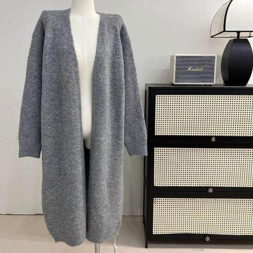 [신상오픈런]여성용 데일리 울 혼합 롱 가디건 오픈넥 로브