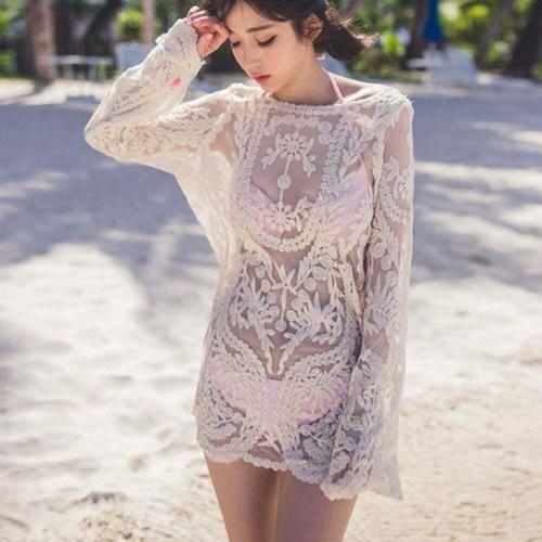풀 레이스 시스루 여름 가디건 숏 로브 루즈핏 비키니 커버업 비치웨어