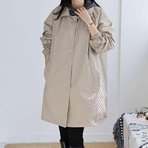스타일아유 여성 야상후드 바바리 코트 셔링 트렌치 롱 코트 봄 가을 간절기 자켓 오피스 출근JP0003