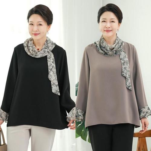 [로즈맘][엄마옷 로즈맘] 비존스카프타이배색블라우스