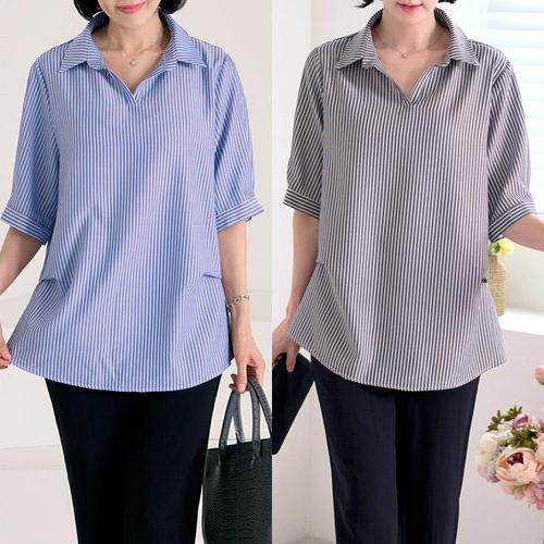 [엄마옷 로즈맘] 연랑반오픈카라블라우스