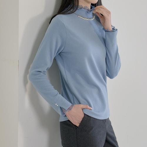 [로즈미] [55~77] 스페 기모 프릴 진주 티블라우스
