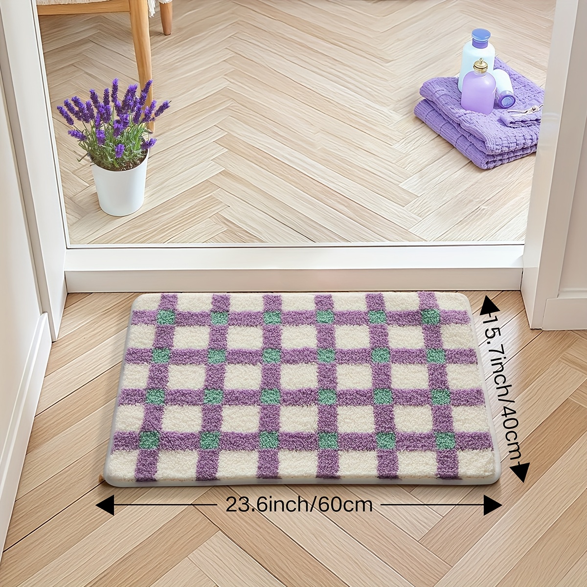 TEMU 1개 플러피 욕실 매트, 심플 체크무늬 초소프트 욕실 매트, 흡수력 좋은 욕실 러그, 미끄럼 방지 편안한 욕실 바닥 매트, 세면대, 욕조, 샤워실용, 봄 데코 여름 데코 홈 데코|싱크대