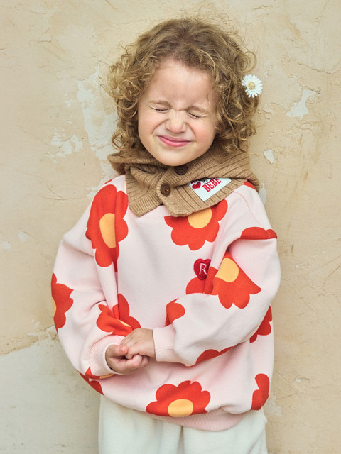 [로토토베베] 쭈리기모 올오버 맨투맨 플라워 핑크베이지