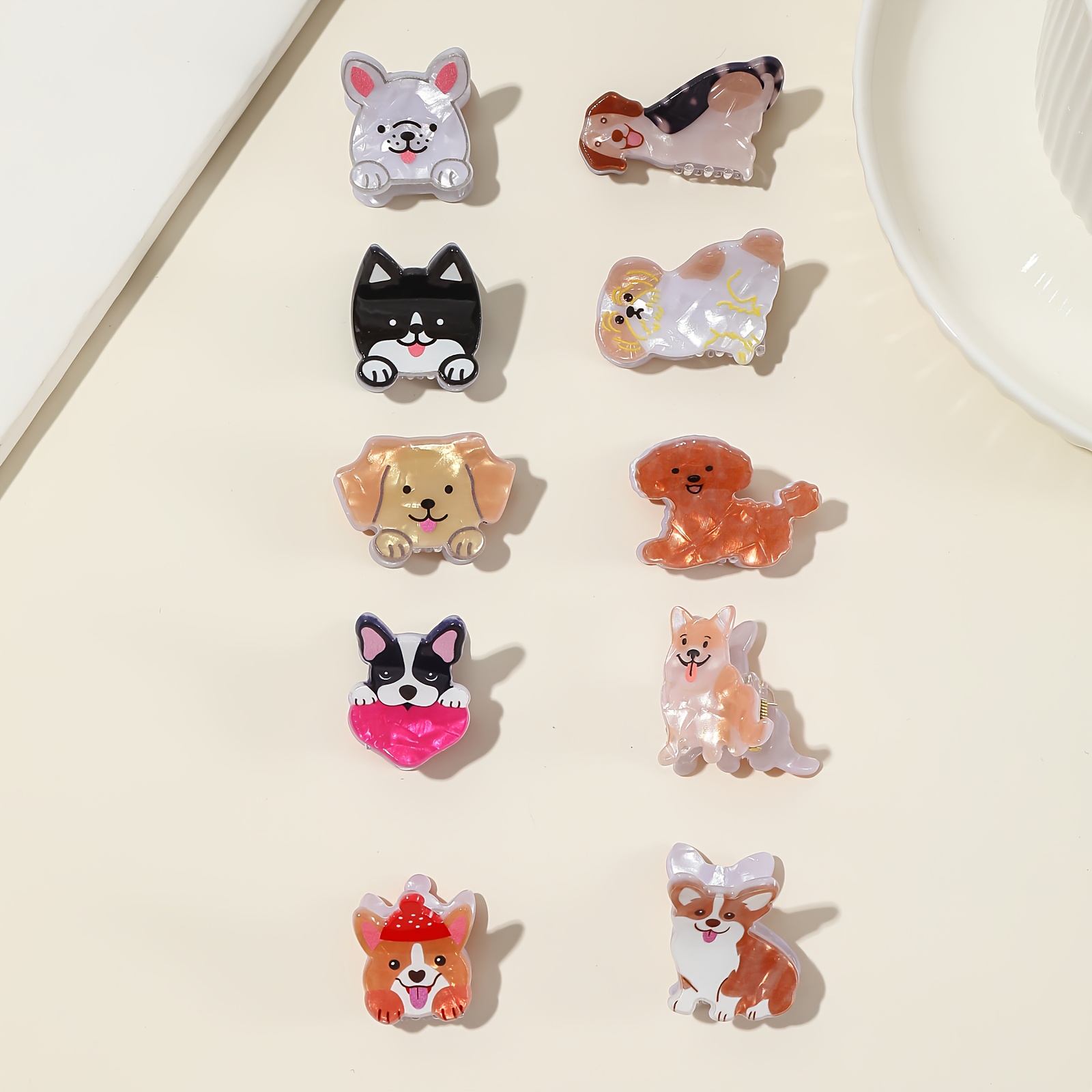 TEMU 여성용 귀여운 강아지 모양 아크릴 헤어 클립 10개 세트 - 여름 해변 휴가용 캐릭터 개 디자인, 생생한 색상, 캐주얼 & 정장 헤어스타일에 안정적인 고정력, 장난기 있는 머리핀, 내구성 있는 헤어피스
