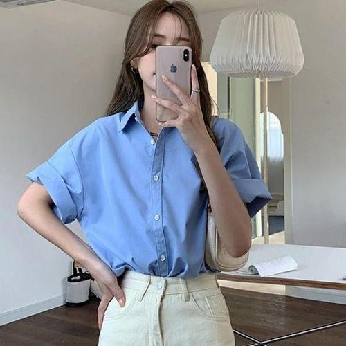 [셀러허브_여성트랜드패션]여자 루즈핏 시원한 소매 남방 여름 반팔 셔츠 롤업