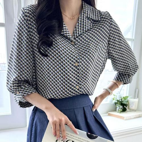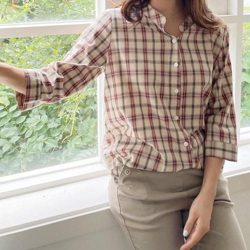 [루시다][루시다] 니아 롤업 체크 블라우스