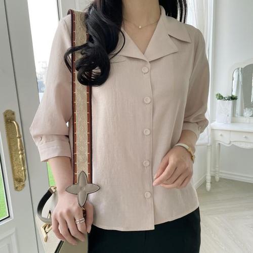 [체이스컬트]여성 오픈카라 소매 롤업 풀오버 셔츠-DBRG5472C03