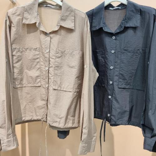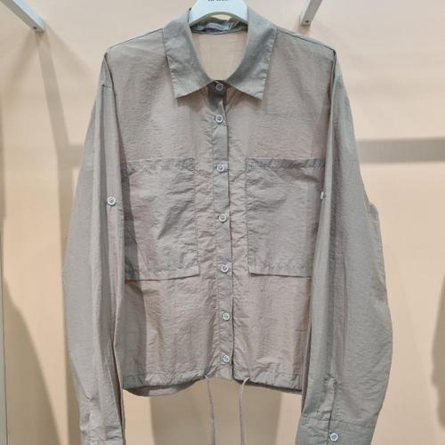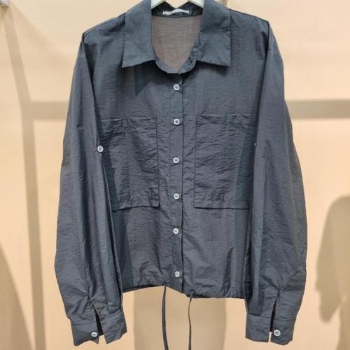 옷자락 / 여성 시스루 포켓 롤업반팔 카라넥 스트링 핀턱 셔츠