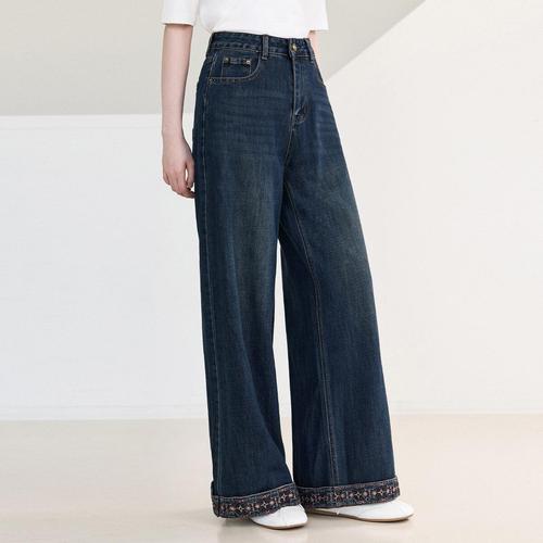[WPBG]밑단 자수 롤업 와이드 데님 팬츠