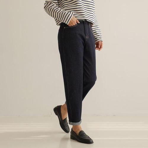 메이첼 여성용 하이웨이스트 슬림핏 일자 롤업 진청 청바지 02035