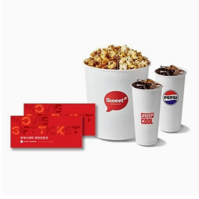 [롯데시네마] 2인 패키지 (2D 2인 관람권 1매+스위트콤보 1매)