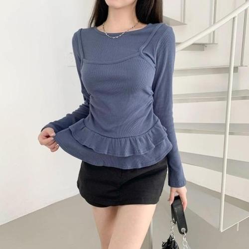 [다잇템]여성 레이온 롱슬리브 잔주름 볼드숄더 나시티