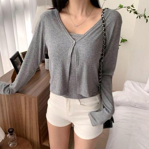 [신상오픈런]여성 크롭 롱슬리브 가디건과 나시티 세트
