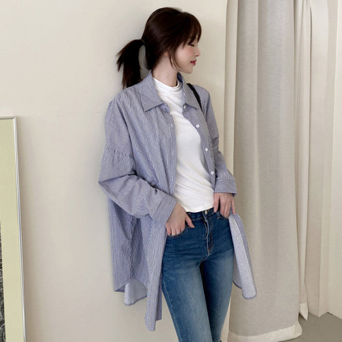 HOTBBA / 스트라이프 루즈핏 롱남방 DM-220242