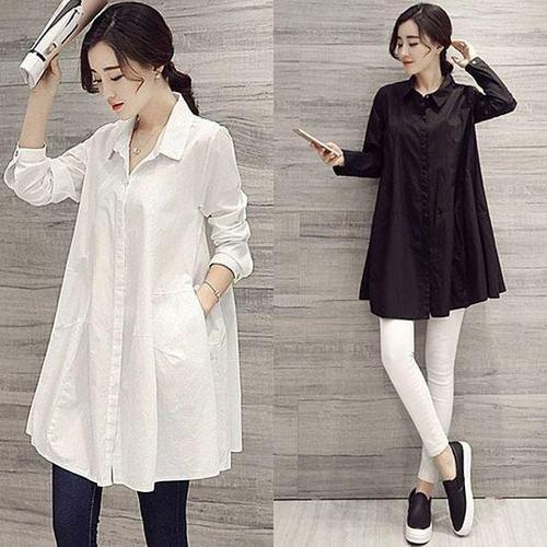 레이어드 셔츠 A라인 흰색 블라우스 롱남방 임부복 Ydv8+5AHe