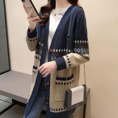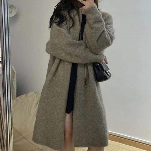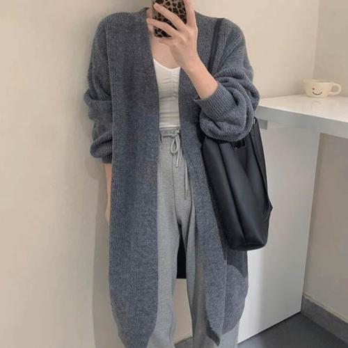708090 여성 롱 니트 가디건 두꺼운 루즈핏 스웨터